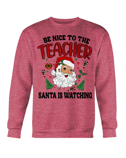 Be Nice to Your Teacher Santa is Watching - Christmas Style Crewneck Sweater